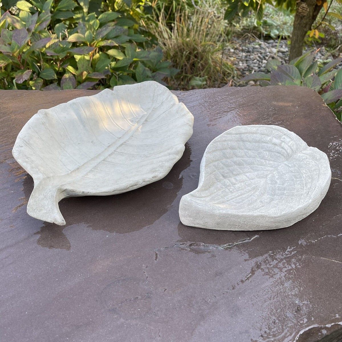 Leaf Birdbath Bird Bath Shaped Cast Leaves Large 16 034 Concrete Garden Puddler Ebay